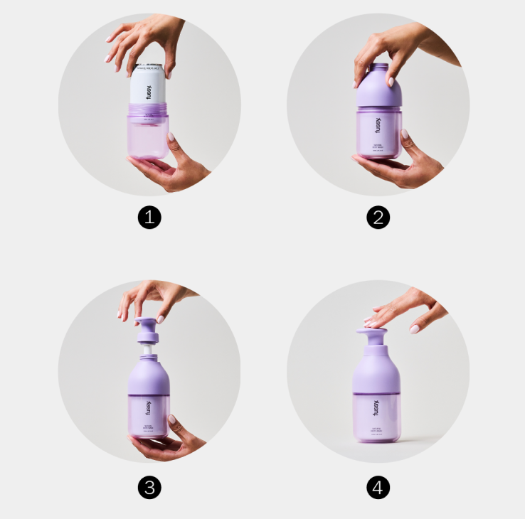 šTo load your hand wash refill into the bottle, please follow the steps below:
